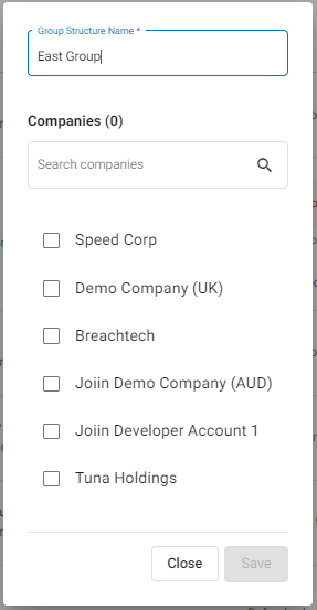 If you have more than one company, the Group Structure dropdown will appear at the top left of the Companies list.