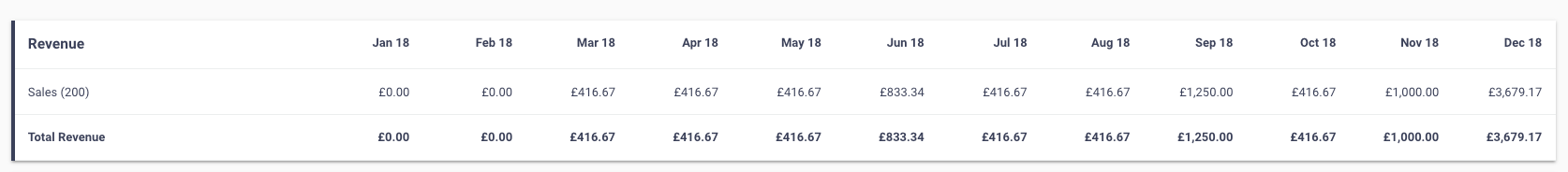 If you have selected To Previous Period or To Previous Year in the Compare dropdown you can also select the number of periods you want to see. Additional periods will be displayed in chronological order, from left to right (depending on Report Settings). This is a useful way to see, for example, the years results month-on-month. For example to view the results for 2018 simply select Dec 2018 for the Report Period, select To Previous Period from the Compare dropdown and select 11 from the Periods to Compare dropdown.