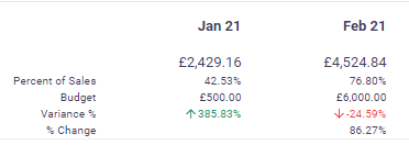 | Budget variance | The budget variance (difference between actual and budget amount) will be displayed. |
