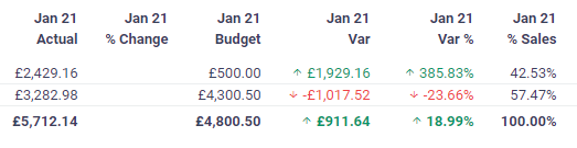 Compact View displays the report results with some data such as Budgets, % Change and Percent of Sales displayed stacked below the actual amount - this view means you can fit more on the screen and is useful to see info at a glance or in report packs and presentations.