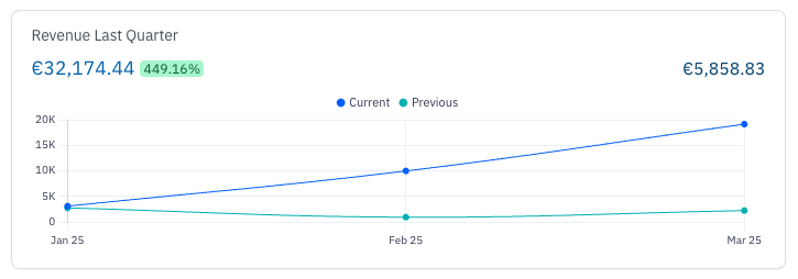 Displays data for each month of the selected period in a line chart. A second line will be shown if you have selected a second KPI or a compare option.