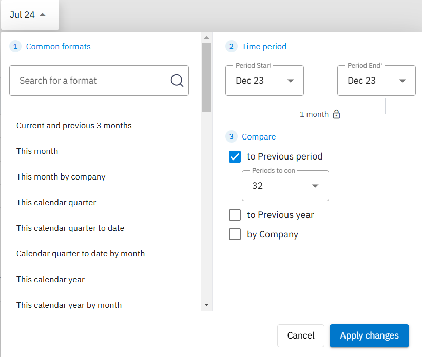 4. Select the To Previous Period filter and set this to show the maximum number of previous periods available for that company