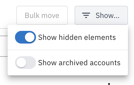 Use this toggle to show or hide any archived accounts. If you have a lot of archived accounts it can be useful to hide them to reduce the amount of accounts to work with.
