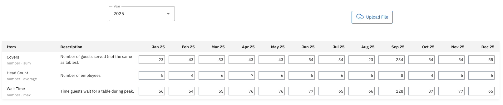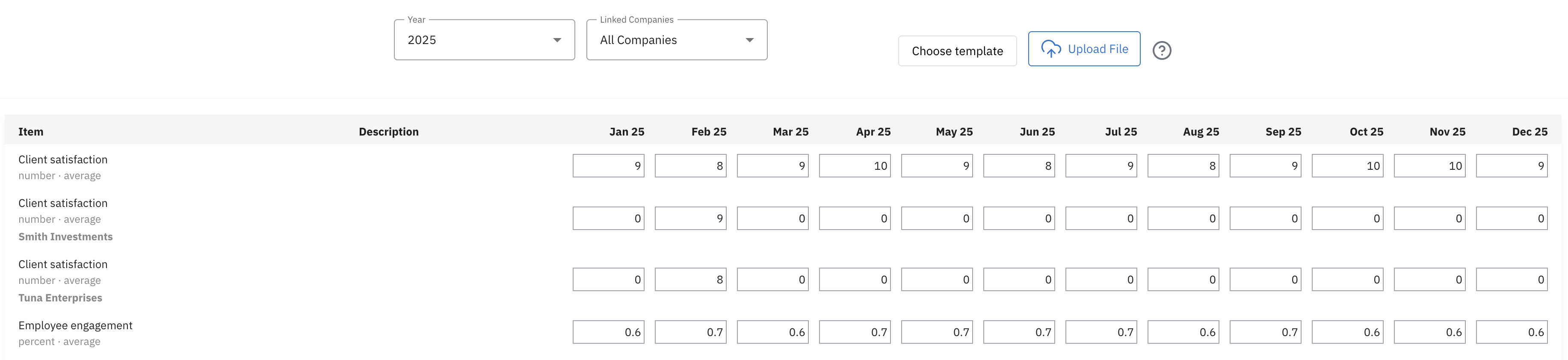 You can add non-financial data in one of two ways: manually or via CSV file upload.