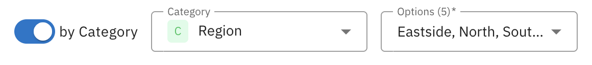 If the KPI Source you selected is a Custom P&L Layout the By Category toggle will be available. Switch this toggle on to see your chart data broken down by Category. You can select the Category and Category Options you wish to include on the Chart - filtering and grouping of the data will occur as it does on the Profit & Loss report.